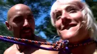In this enticing outdoor scene, a man and two women, all over the age of 18, engage in a passionate and kinky threesome.The woman, who is described as having a pierced cunt, eagerly takes his thick and pierced cock into her mouth, giving him a blowjob while gagging on it to satisfy her desires.As he enjoys the sensation of the gag reflex in her throat, the second woman gets on all fours, ready to receive an anal penetration with the pierced penis.With their outdoor setting providing the perfect backdrop for this kinky encounter, the man proceeds to rim her ass while fingering the first womans gspot, enjoying the feeling of threesome fisting as they both are intertwined in a passionate and sensual dance.The women scream and moan out loud, fun on the pierced cock and craving more intensity with each passing moment, as their cunts and anus feel filled and penetrated.As the woman with the pierced cunt reaches climax, she is being rimmed by her partner, experiencing a dual pleasure of both her mouth and cunt being satisfied in this outdoor orgy.The threesomes passionate climax leaves them all breathless and fully satisfied, eagerly awaiting their next kinky adventure together.